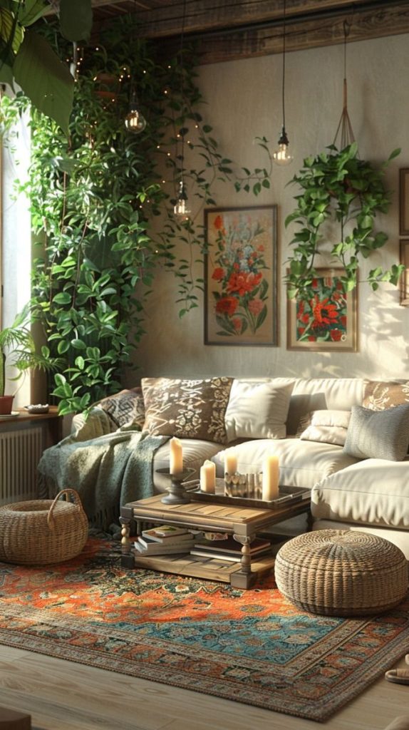 Materiais Naturais: O uso de materiais como madeira, bambu, rattan e cerâmica complementa a presença das plantas e reforça a conexão com a natureza. Esses materiais são frequentemente usados em móveis, acessórios e revestimentos.