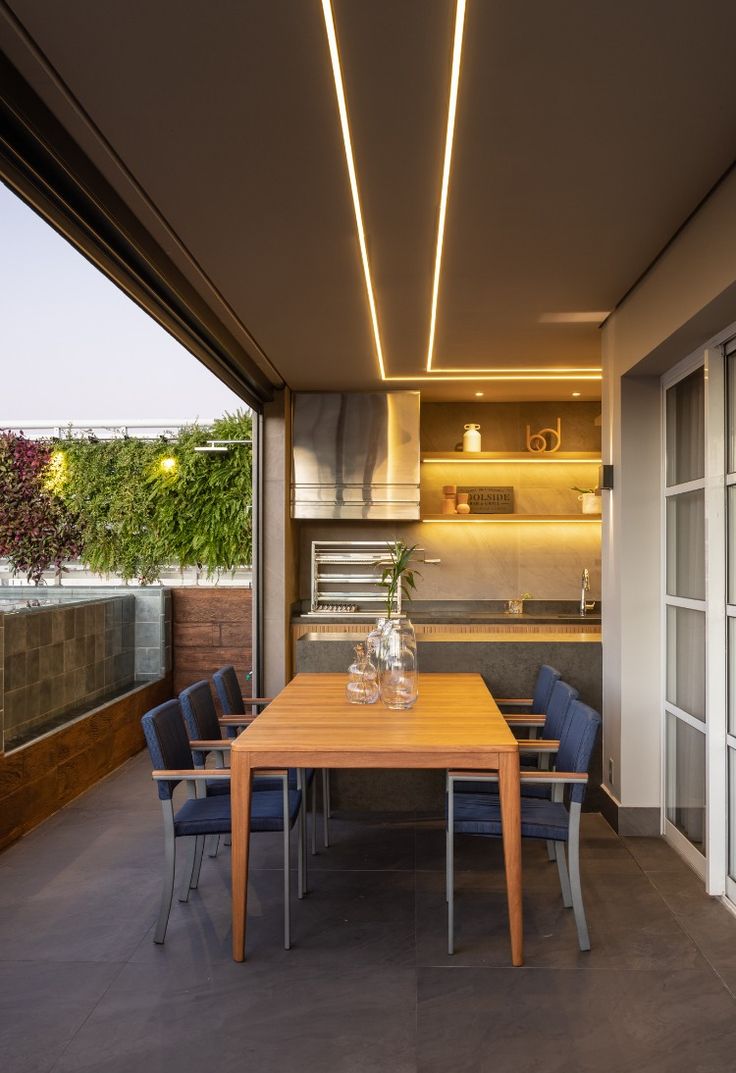 Essas áreas são bastante valorizadas em projetos de arquitetura contemporâneos, especialmente em apartamentos com varandas gourmet ou casas com espaço externo dedicado ao lazer e socialização. A área gourmet é a integração com outros espaços da casa, como sala de jantar, sala de estar ou áreas externas, como quintais e varandas. Essa integração favorece a interação entre os convidados e quem está preparando as refeições, criando um clima descontraído e participativo
